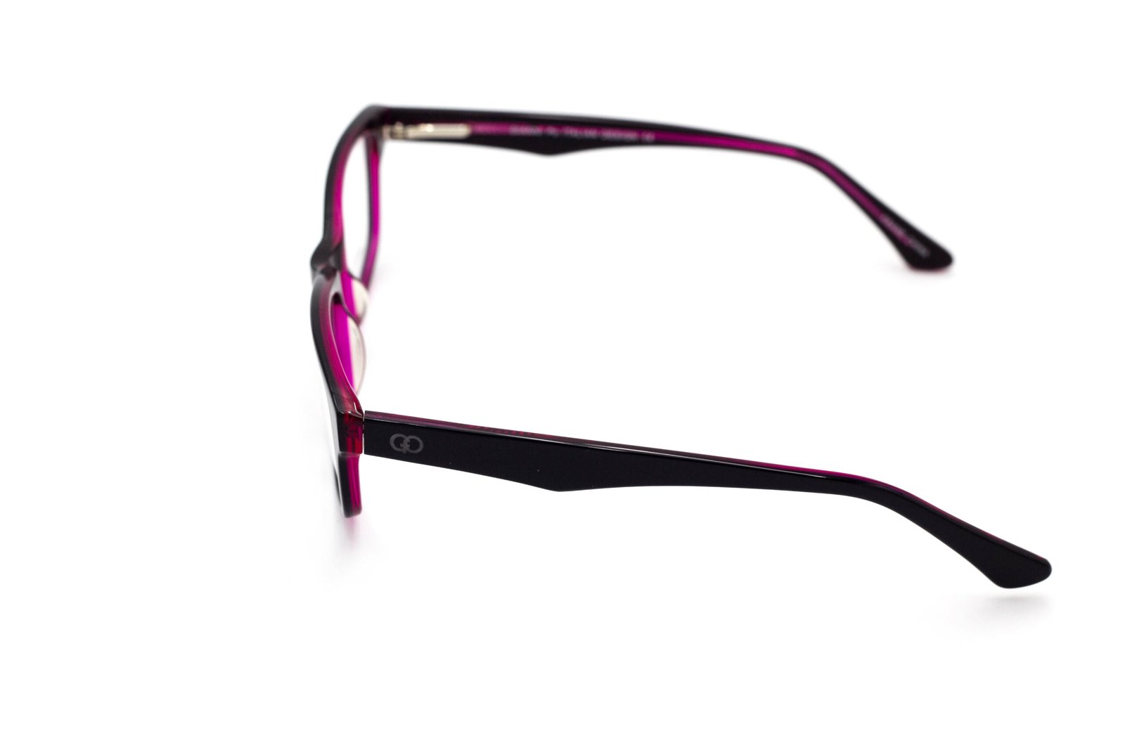 AURA irradia elegancia y seguridad. Su contraste entre negro brillante y tonos violetas crea un efecto moderno y sofisticado, mientras el brazo ancho realza su estructura con un toque de distinción.