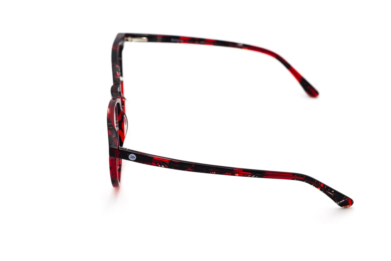 Su forma cuadrada con bordes sutiles resalta las facciones y aporta carácter, mientras los tonos burdeos y rojos con matices oscuros le dan una vibra audaz y moderna. Perfectas para mujeres que proyectan confianza y estilo propio.